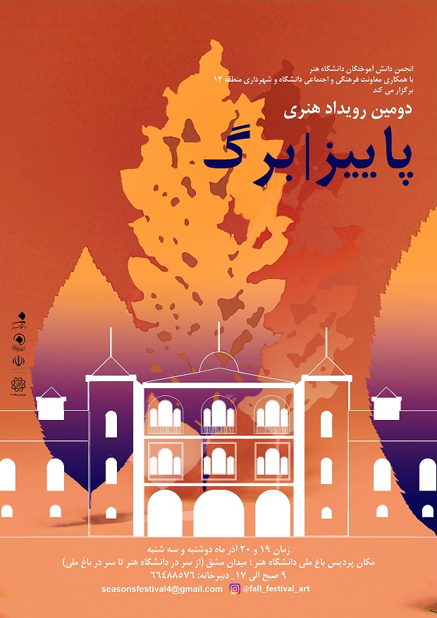 انجمن دانش آموختگان دانشگاه هنر با همکاری معاونت فرهنگی و اجتماعی ، رویداد پاییز _ برگ را با هدف گسترش و توجه به هنر معاصر در یک گفتمان محیط زیستی و شهری برگزار می کند .