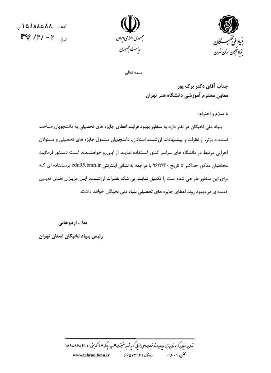 قابل توجه دانشجویان استعداد درخشان (فراخوان تکمیل پرسشنامه) ۰۷ خرداد ۱۳۹۶ | ۱۹:۲۳ کد : ۱۰۴۴ ارسال به دیگران نام شما ایمیل شما ایمیل دریافتکننده ارسال انصراف تعداد بازدید:۱۵۳۵