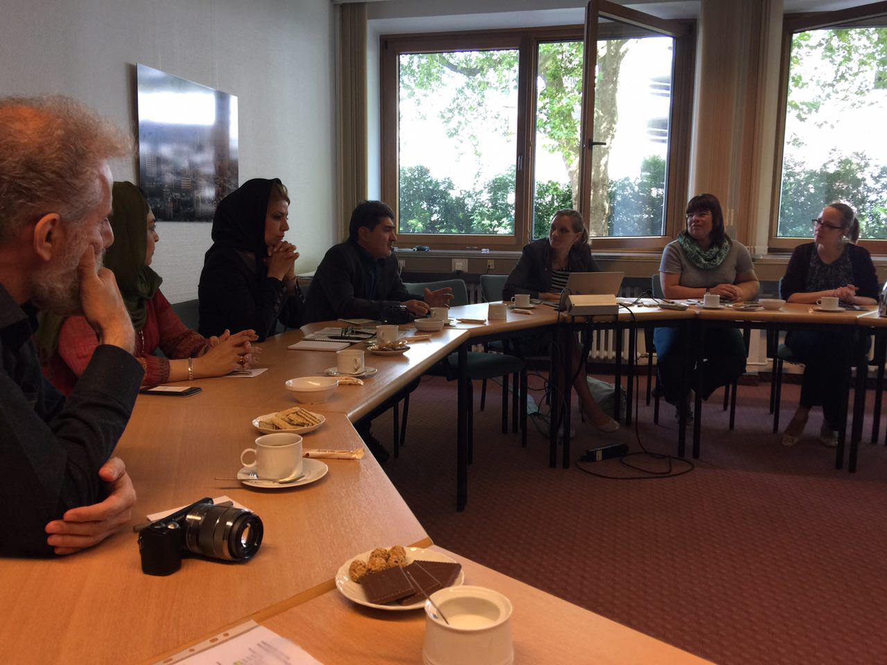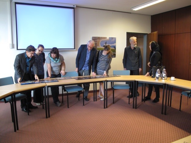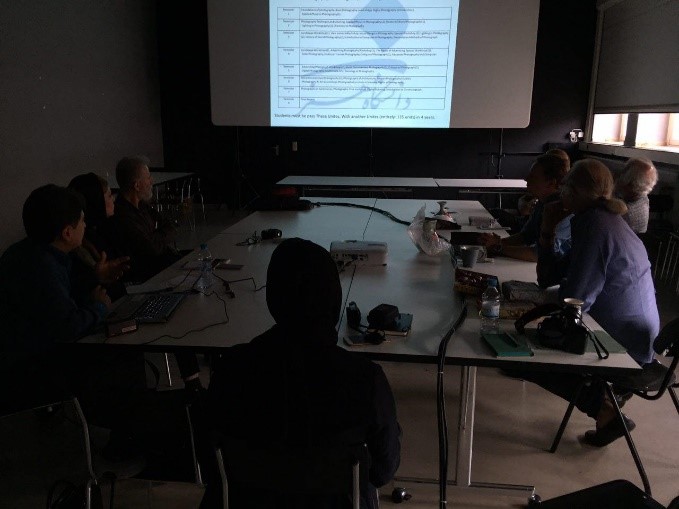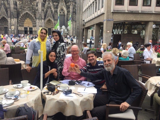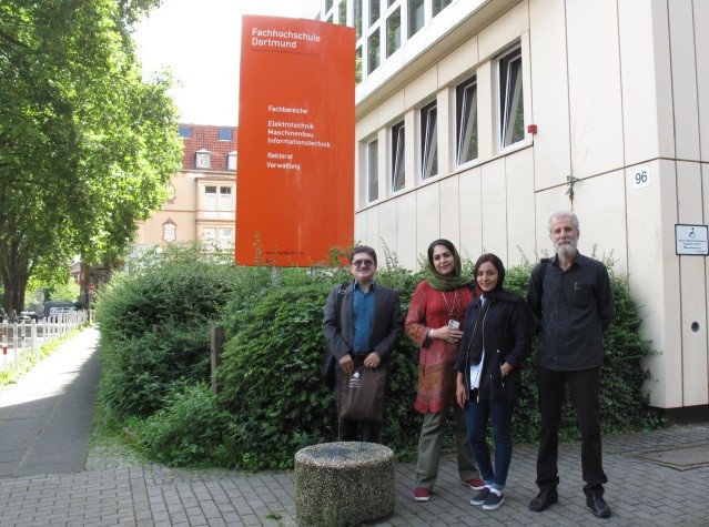 روز پنجم ۹/۵/۱۳۹۶: امروز مهم بود چون اعضای گروه میبایست به دیدار نایبرئیس دانشگاه علوم کاربردی و هنرهای دورتموند، خانم دکتر کاترین لوهر و مدیر دفتر روابط بینالملل خانم داگمار هوش و نماینده بنیاد DAAD میرفتیم. جلسهی خوبی بود. هر یک از اعضای گروه به طور خلاصه مطالب مربوط به حوزهی کاری خویش را مطرح کردند. پس از آن پرسش و پاسخ از چند و چون همکاری متقابل در حوزهی عکاسی و سایر رشتههای هنری و کاربردی دیگر مانند معماری و امکان برگزاری کارگاه مشترک در سایر رشتههای هنری مطرح شد و مورد موافقت قرار گرفت. در پایان جلسه به رسم یادبود، هدایای در نظر گرفته شده همراه با بروشورهای معرفی دانشگاه و گروه عکاسی به مسئولان دانشگاه اهدا شد که برایشان خوشایند بود. همچنین تعداد ۶ عکس شاسی شده از عکسهای تحویلی یکی از دانشجویان عکاسی دانشگاه هنر، از معماری زیبای خانههای قدیمی کاشان به نایبرئیس دانشگاه اهدا شد که مورد توجه ایشان قرار گرفت.
