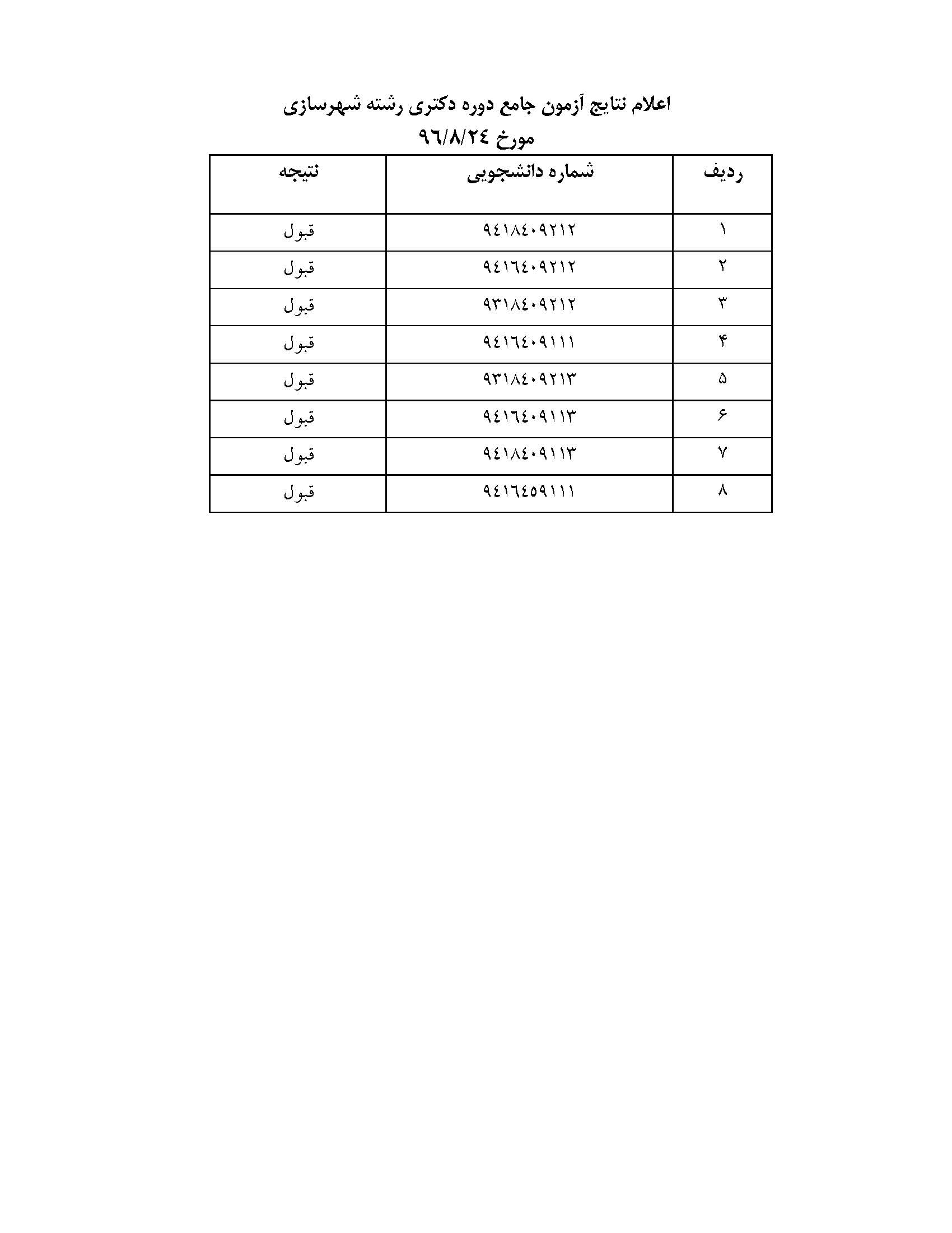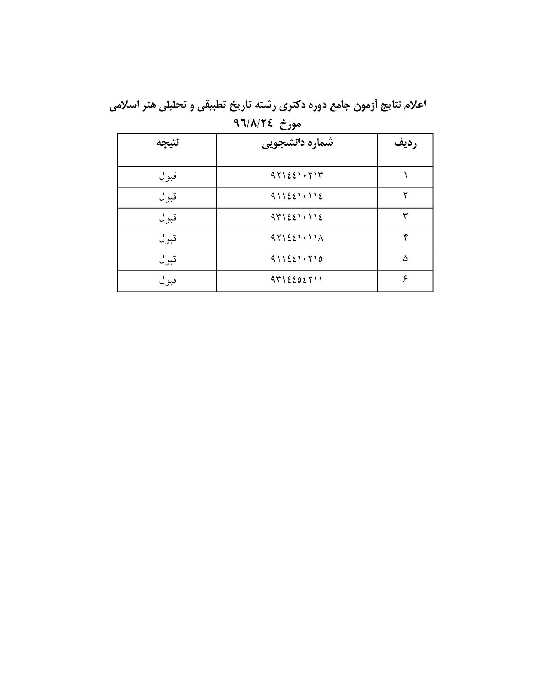 نتایح آزمون جامع آبان ماه ۱۳۹۶ مربوط به دانشجویان دکتری رشته های پژوهش هنر، شهرسازی و تاریخ تطبیقی و تحلیلی هنراسلامی ۲۸ آذر ۱۳۹۶ | ۱۵:۴۳ کد : ۱۴۲۲ ارسال به دیگران نام شما ایمیل شما ایمیل دریافتکننده ارسال انصراف تعداد بازدید:۱۸۹۳