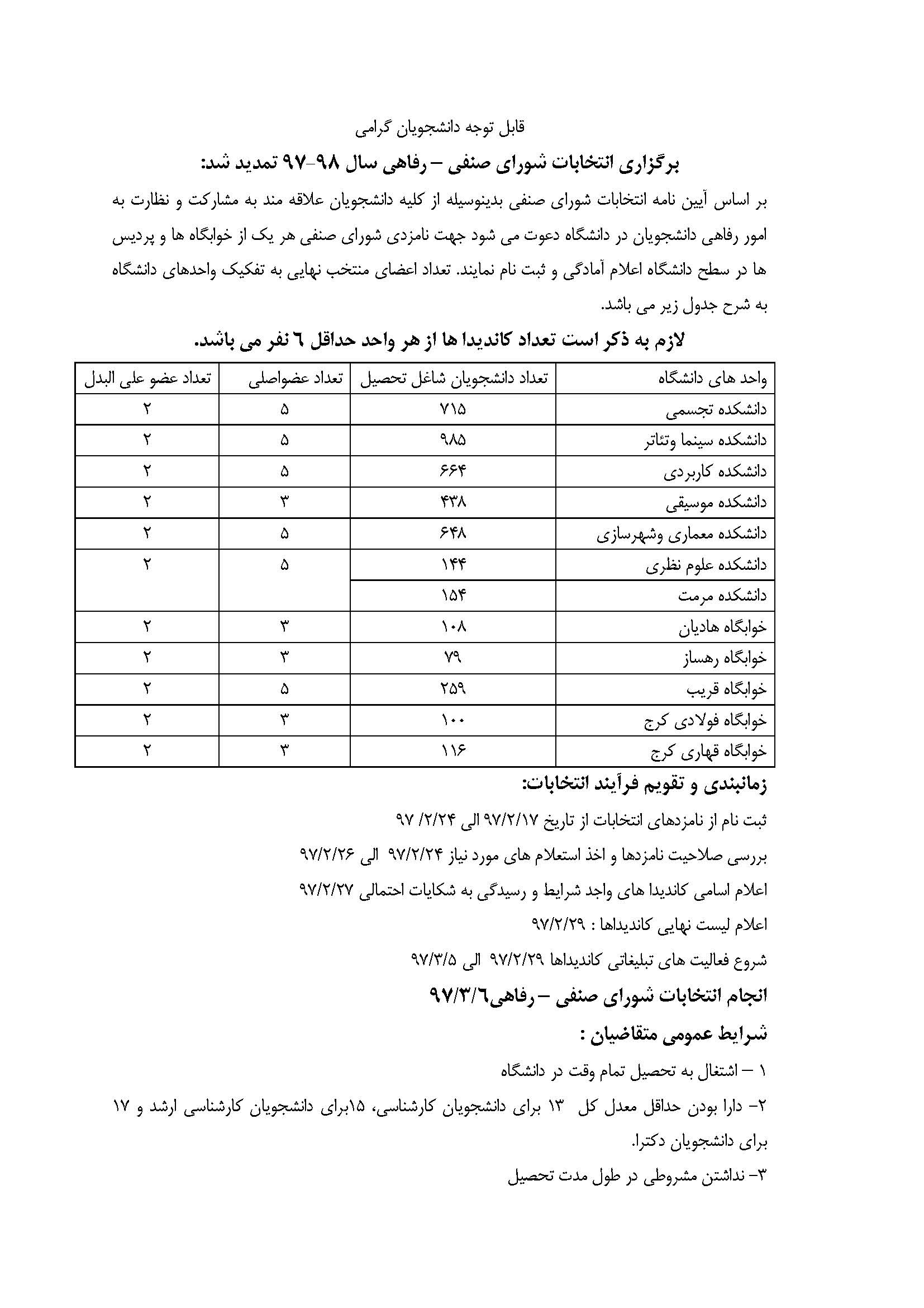برگزاری انتخابات شورای صنفی – رفاهی سال ۹۸-۹۷ تمدید شد ۱۹ اردیبهشت ۱۳۹۷ | ۱۵:۲۸ کد : ۱۷۲۳ رویدادها ارسال به دیگران نام شما ایمیل شما ایمیل دریافتکننده ارسال انصراف تعداد بازدید:۱۳۵۲