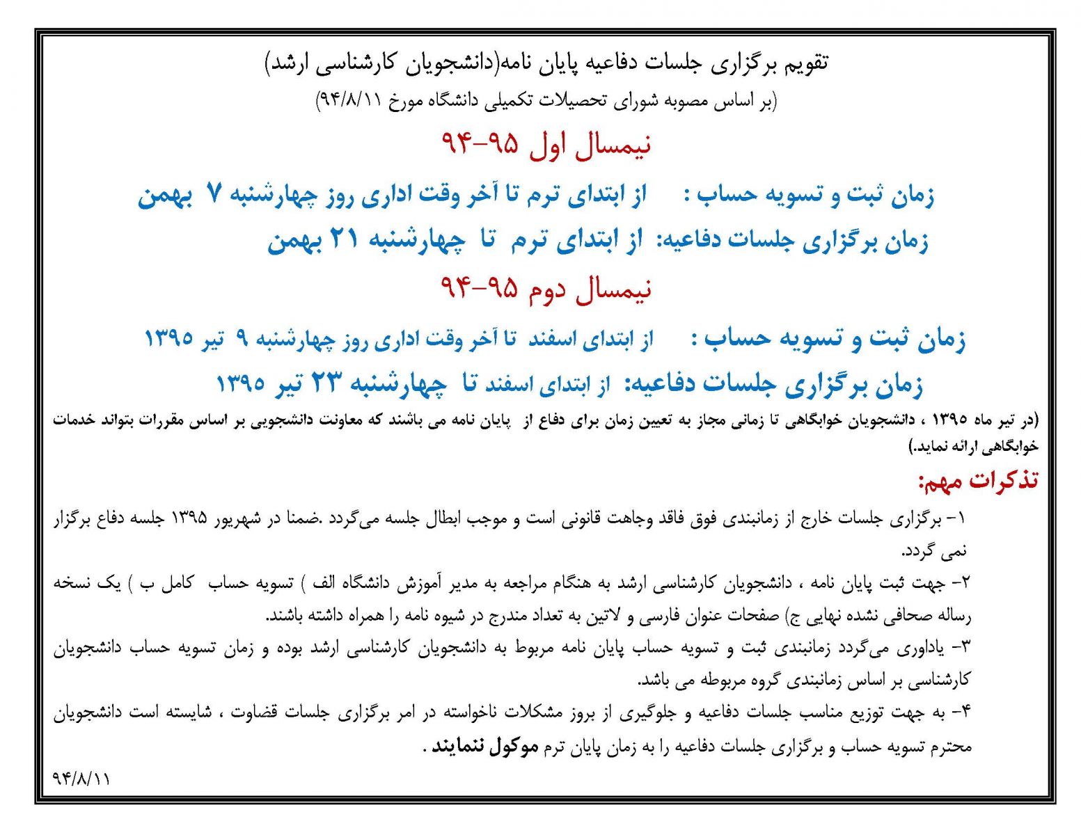 تقویم برگزاری جلسات دفاعیه کارشناسی ارشد در سال تحصیلی ۹۵-۹۴ ۱۲ آبان ۱۳۹۴ | ۱۵:۱۰ کد : ۱۷۳ ارسال به دیگران نام شما ایمیل شما ایمیل دریافتکننده ارسال انصراف تعداد بازدید:۱۰۸۹