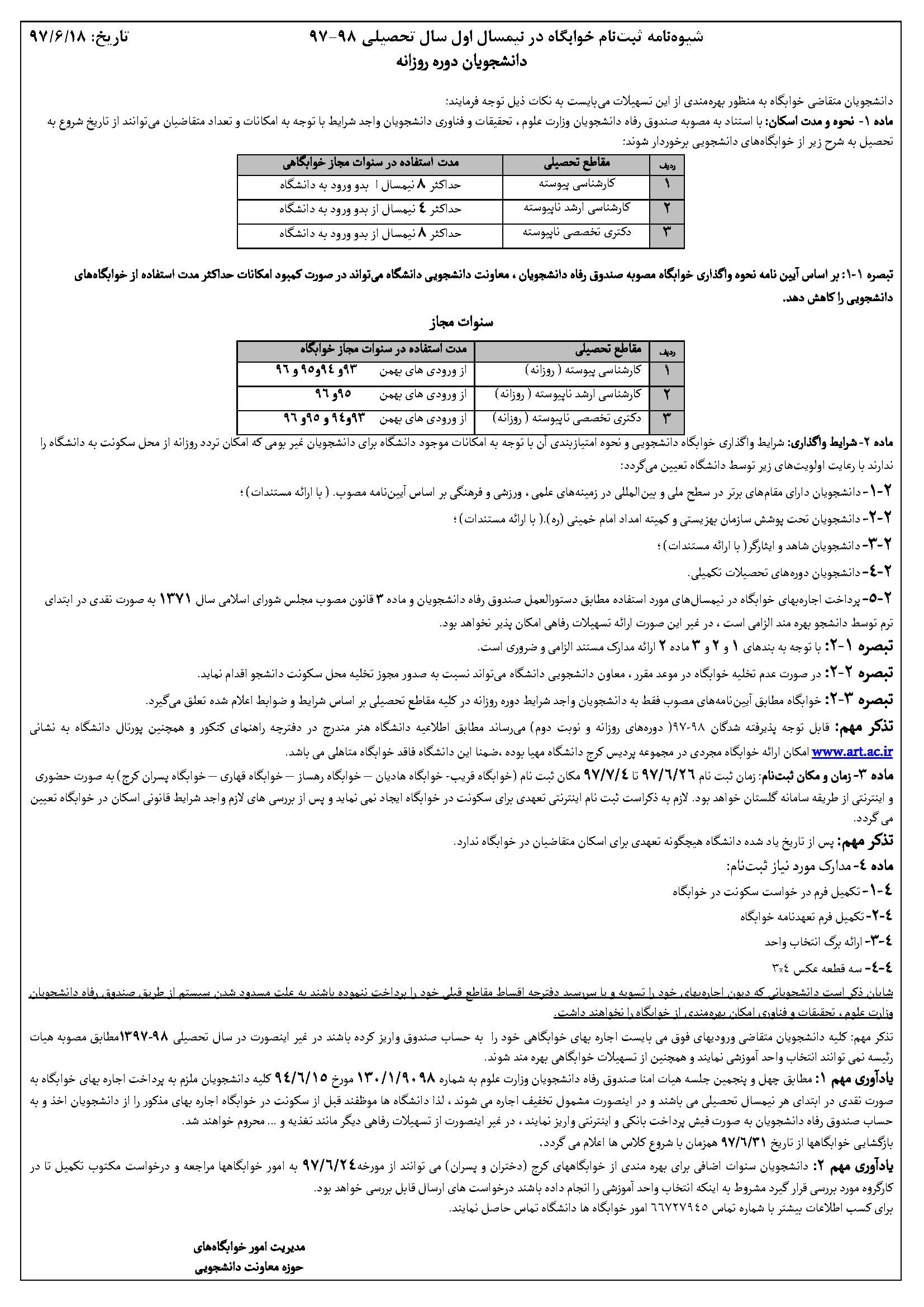 اطلاعیه شیوه نامه ثبت نام خوابگاهها ۱۸ شهریور ۱۳۹۷ | ۰۸:۱۲ کد : ۱۸۷۵ ارسال به دیگران نام شما ایمیل شما ایمیل دریافتکننده ارسال انصراف تعداد بازدید:۵۷۷۶