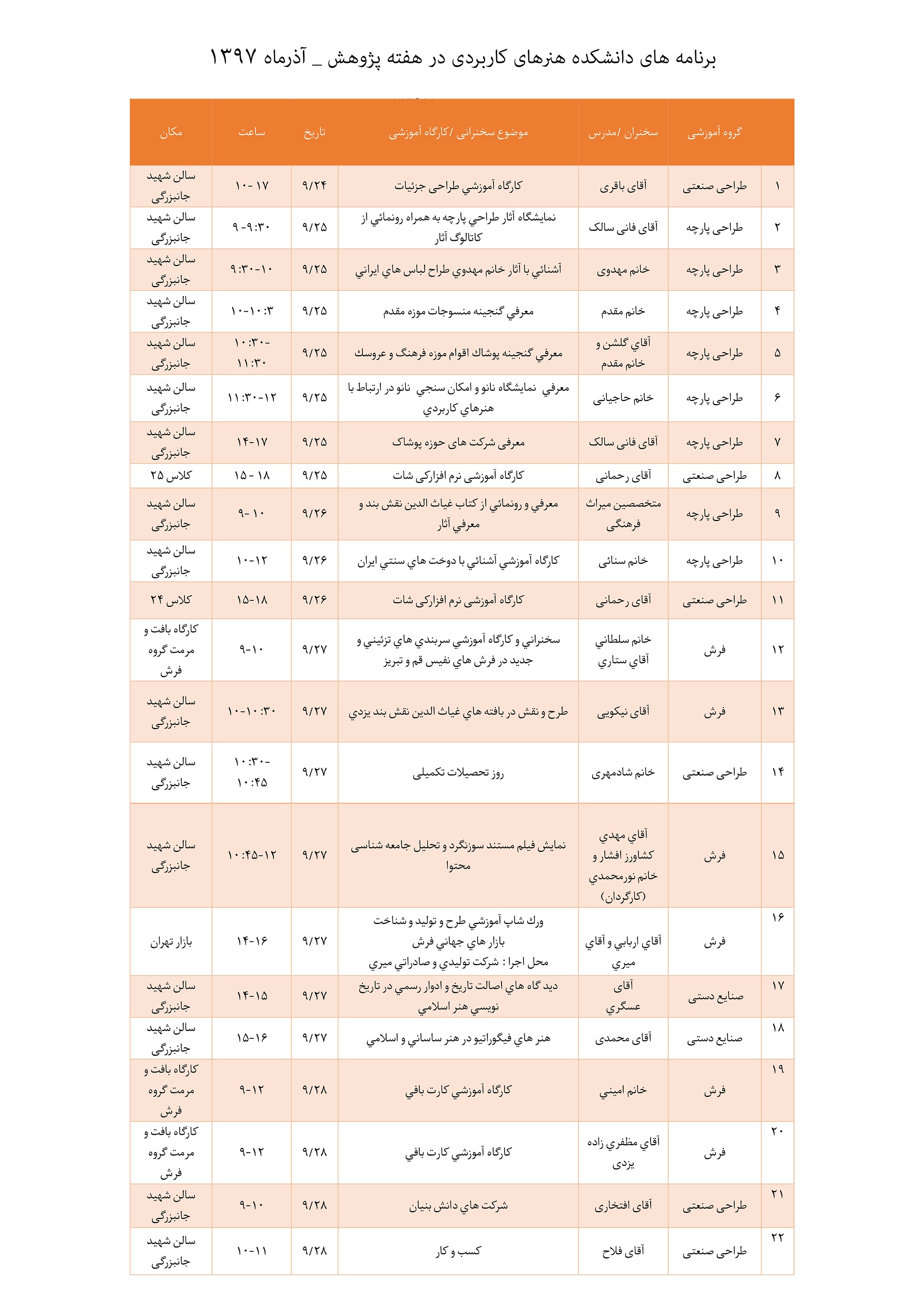 برنامه های دانشکده هنرهای کاربردی در هفته پژوهش ۱۸ آذر ۱۳۹۷ | ۱۵:۱۱ کد : ۲۰۸۲ ارسال به دیگران نام شما ایمیل شما ایمیل دریافتکننده ارسال انصراف تعداد بازدید:۱۴۸۴
