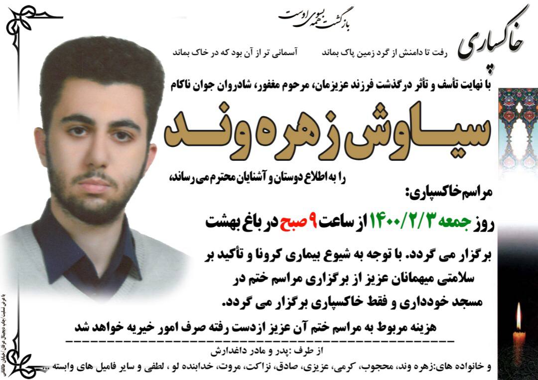 تسلیت به مناسبت درگذشت سیاوش زهره وند دانشجوی رشته ی سینما