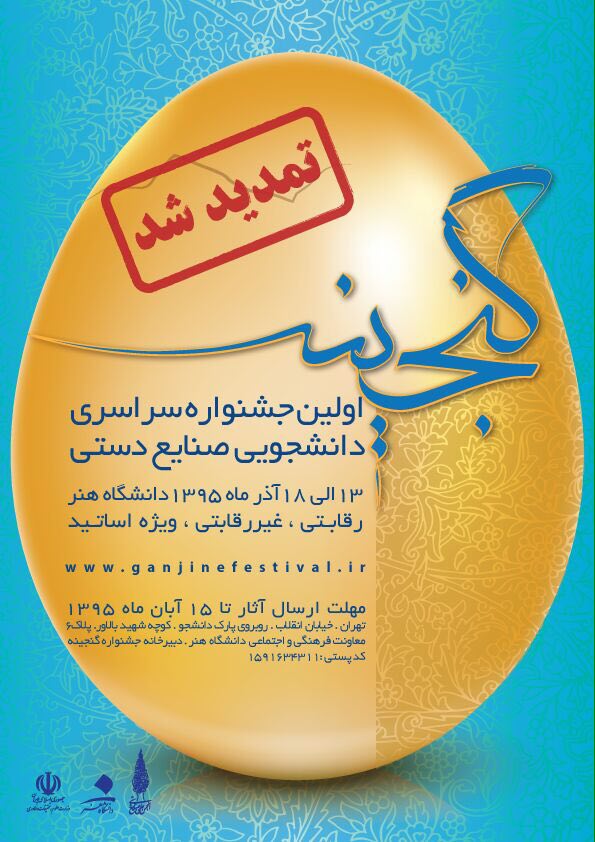 مهلت ثبت نام در جشنواره صنایع دستی گنجینه تمدید شد ۲۲ اردیبهشت ۱۳۹۵ | ۱۶:۰۱ کد : ۴۴۸ رویدادها ارسال به دیگران نام شما ایمیل شما ایمیل دریافتکننده ارسال انصراف تعداد بازدید:۱۱۰۷ جهت کسب اطلاعات بیشتر کلیک کنید
