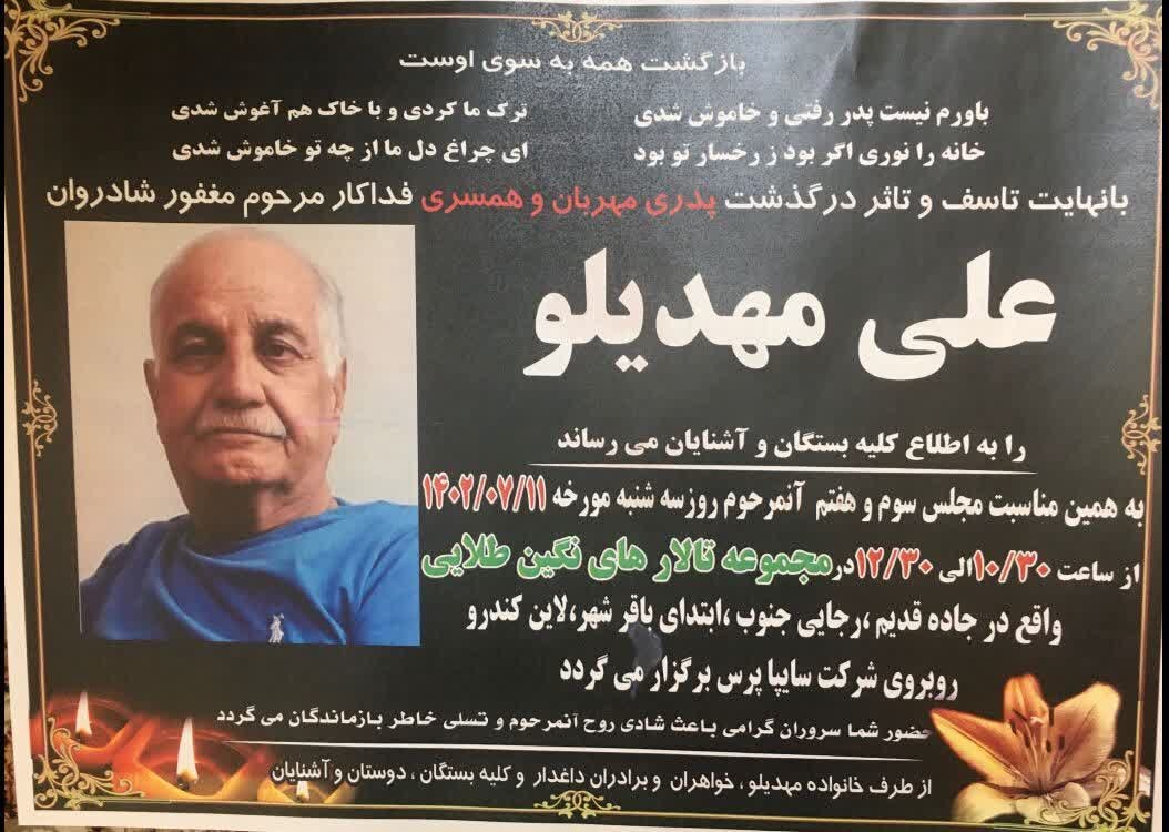 همکار بازنشسته ی عزیزمان آقای علی مهدیلو دعوت حق را لبیک گفت