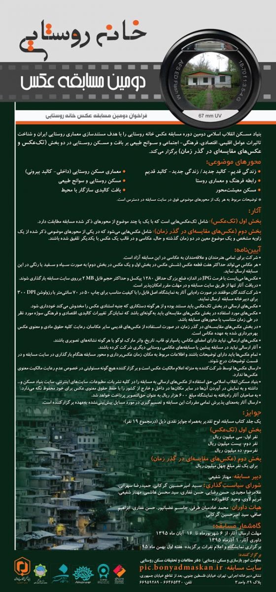 دومین مسابقه عکس «خانه روستایی» برگزار می شود ۰۶ شهریور ۱۳۹۵ | ۱۷:۱۰ کد : ۵۷۴ رویدادها ارسال به دیگران نام شما ایمیل شما ایمیل دریافتکننده ارسال انصراف تعداد بازدید:۱۰۸۹ جهت کسب اطلاعات بیشتر، روی پوستر زیر کلیک کنید