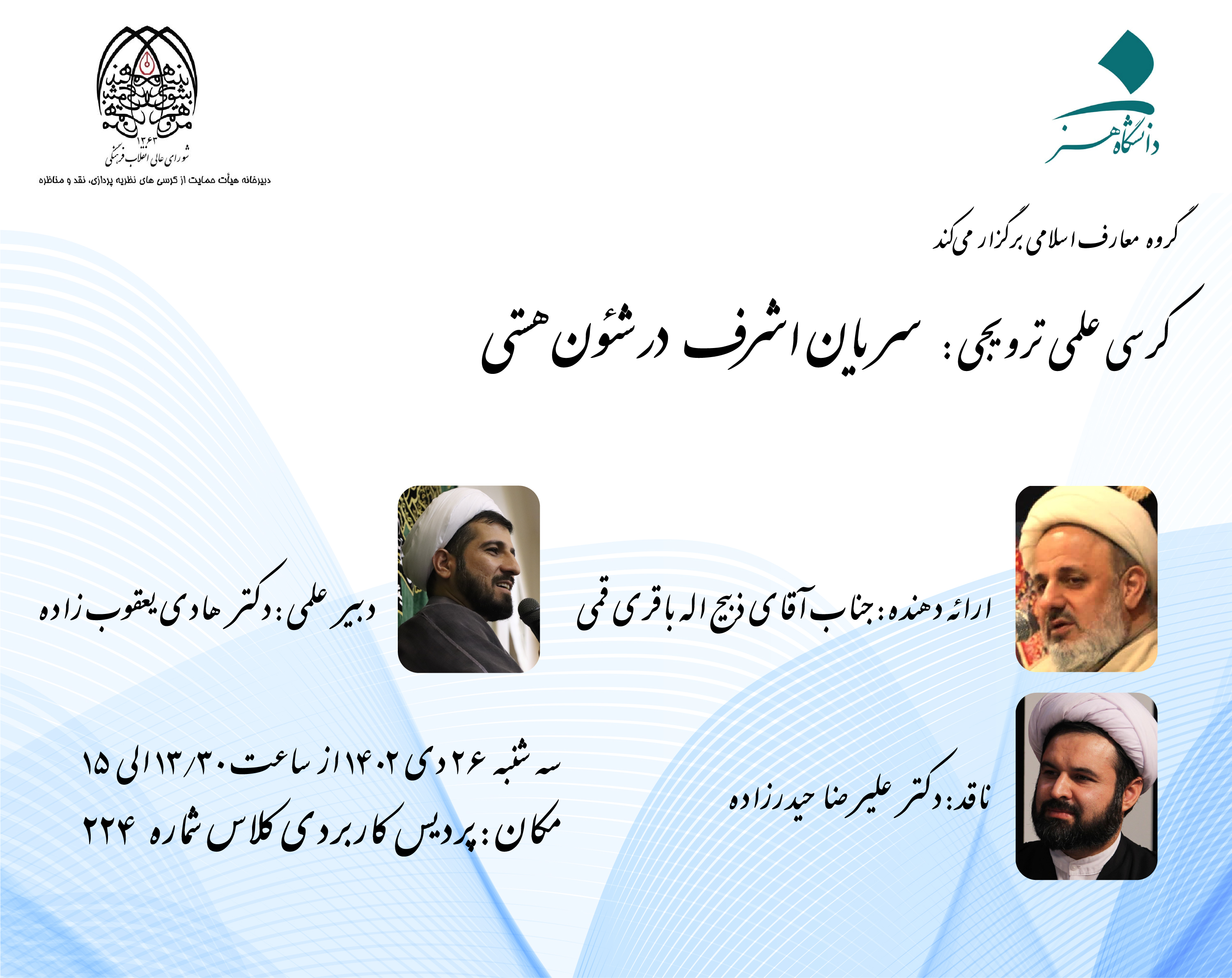 گروه معارف اسلامی برگزار می کند کرسی علمی ترویجی با موضوع: سریان اشرف در شئون زندگی ۲۳ دی ۱۴۰۲ | ۱۱:۵۵ کد : ۶۰۰۲ رویدادها ارسال به دیگران نام شما ایمیل شما ایمیل دریافتکننده ارسال انصراف تعداد بازدید:۲۴۱