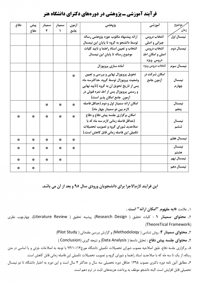 فرآیند آموزشی-پژوهشی در دوره های دکتری دانشگاه هنر ۰۸ آبان ۱۳۹۵ | ۱۷:۰۰ کد : ۶۷۰ ارسال به دیگران نام شما ایمیل شما ایمیل دریافتکننده ارسال انصراف تعداد بازدید:۱۰۷۰
