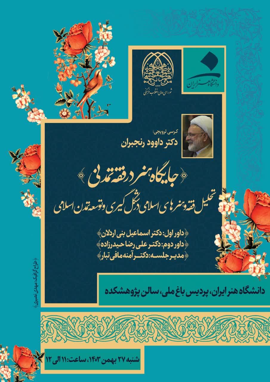 کرسی علمی- ترویجی با موضوع: جایگاه هنر در فقه تمدنی ۲۳ بهمن ۱۴۰۳ | ۱۳:۳۳ کد : ۶۷۴۹ رویدادها ارسال به دیگران نام شما ایمیل شما ایمیل دریافتکننده ارسال انصراف تعداد بازدید:۱۴۶
