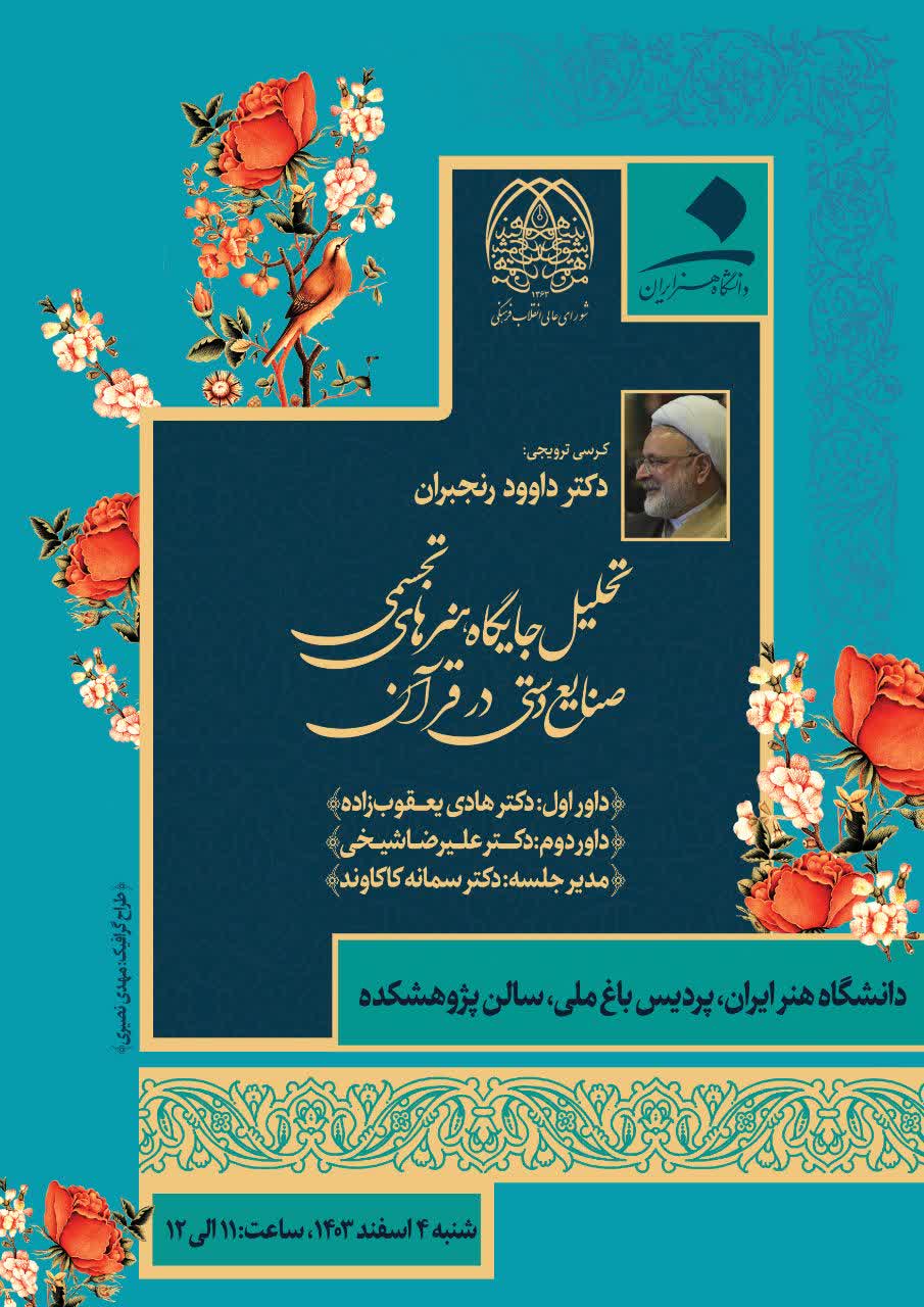 کرسی علمی- ترویجی با موضوع: تحلیل جایگاه هنرهای تجسمی صنایع دستی در قرآن ۰۱ اسفند ۱۴۰۳ | ۱۵:۱۶ کد : ۶۷۵۷ رویدادها ارسال به دیگران نام شما ایمیل شما ایمیل دریافتکننده ارسال انصراف تعداد بازدید:۱۰۴