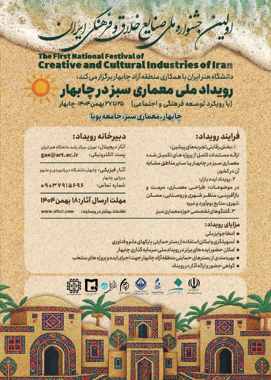 فراخوان اولین جشنواره ملی صنایع خلاق و فرهنگی ایران (رویداد ملی معماری سبز در چابهار)