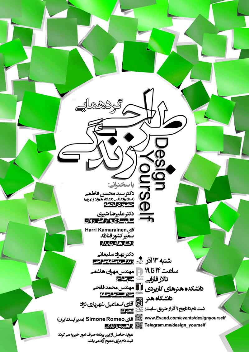 گردهمایی طراحی زندگی با هدف تبیین نقش طراحی در زندگی روزمره و همچنین تاکید بر لزوم شروع تغییر و طراحی از زندگی فرد طراح، به همت گروه طراحی صنعتی دانشگاه هنر و انجمن علمی طراحی صنعتی دانشگاههای هنر ، الزهرا و تهران، در دانشکده هنرهای کاربردی دانشگاه هنر، روز ۱۳ آذرماه ۹۵ برگزار شد.